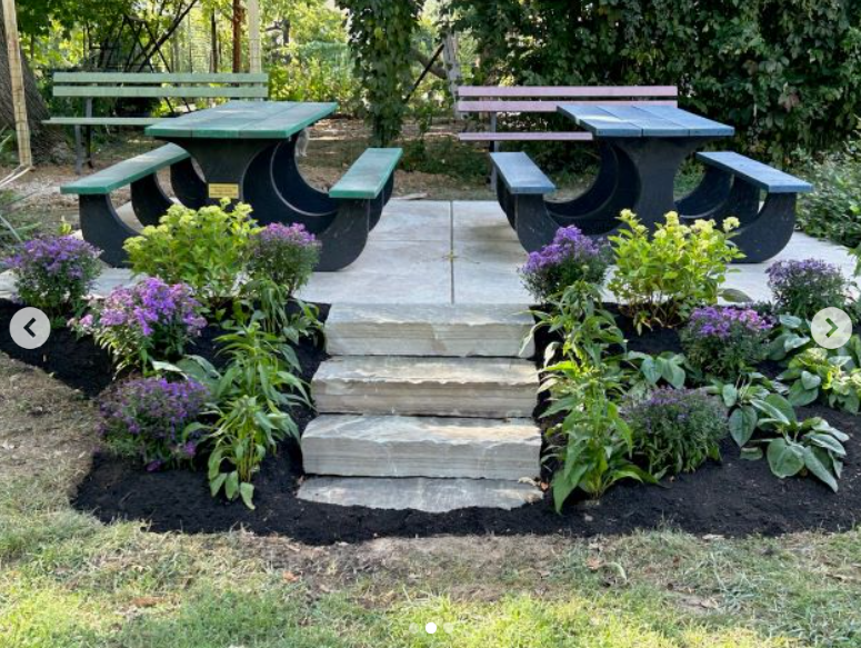 These benches and picnic tables were made out of caps and lids that EC had been collecting.